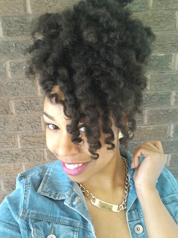 My current routine is pretty simple. I mainly co-wash my hair instead of using shampoo. I will co-wash at least once a week and shampoo my hair maybe once every 4-6 weeks. I found that co-washing allows me to keep my hair moisturized, by not stripping my hair like shampoo does and it still gets my hair and scalp clean. My conditioner of choice is Herbal Essence’s Hello Hydration Conditioner or Tresemme Naturals Radiant Volume Conditioner. When I shampoo my hair I use Shea Moisture Organic Raw Shea Butter Moisture Retention Shampoo. I will first put my hair into 4 workable sections and proceed to wash my hair one section at a time. After I am finished with each section apply my conditioner, detangle my hair and let the conditioner sit for about 10 mins. I will rinse it out one section at a time and then squeeze the excess water out. I will then use a cotton shirt to absorb any extra water. Next, I will apply my leave in which is Paul Mitchelle’s The Conditioner to each section and then I will apply my Moisture Butter or Curling Smoothie to my hair to add moisture. I will then apply an oil to seal it all in. My oils of choice are either Sweet Almond or Grapeseed Oil. I will then two strand twist my hair doing 3-4 twists in each section depending on the look I want. I will let the twists sit overnight. Lastly, I untwist my hair, separate with Coconut Oil on my hands, and fluff. My hair always looks moisturized and is defined when I do my twist out. That is my favorite go to hairstyle.